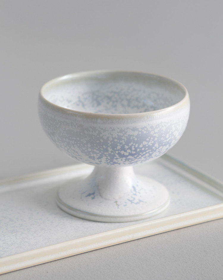 윤상현 작가만의 푸르고 오묘한 결정유약 텍스처가 매력적인 기물이며,